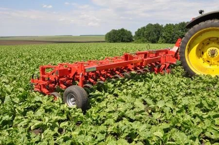 - Культиватор снабжен системой тяг для автоматического выравнивания на склоне (выравнивание 2-х направляющих колес)